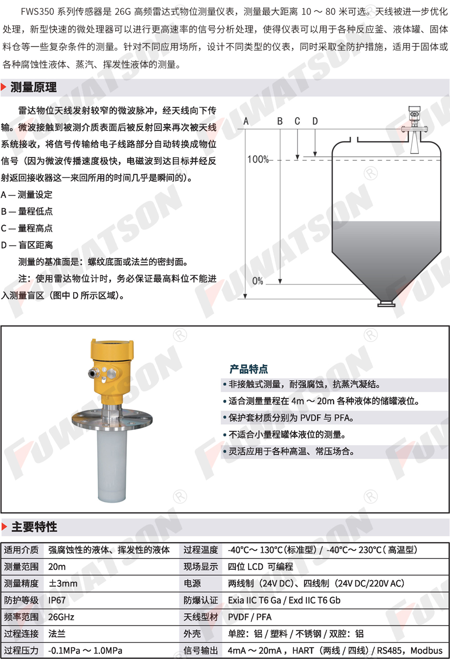FWS351 26GHz高(gāo)頻雷達物位計(ji)